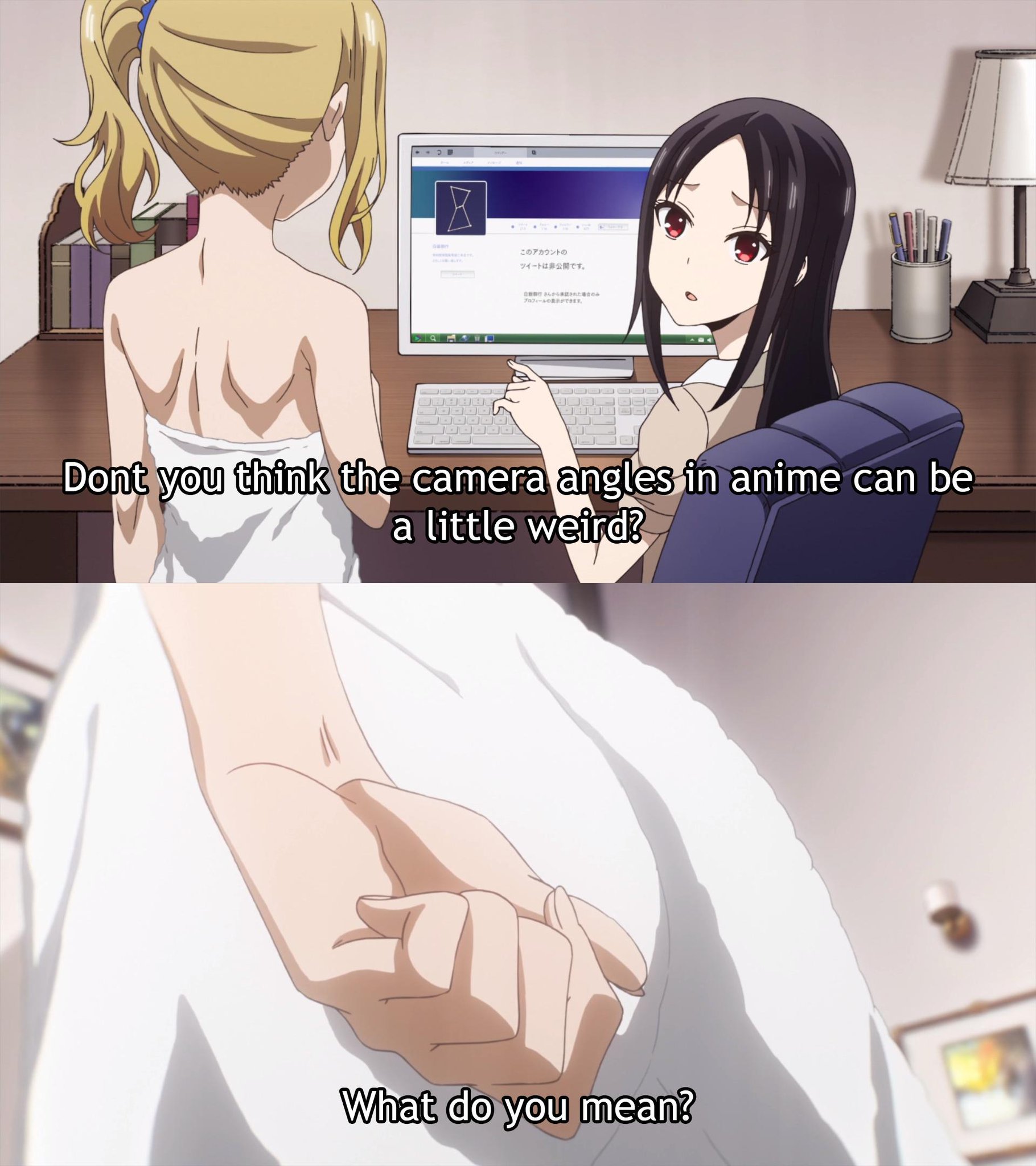 Anime Newbies Don T You Think The Camera Angles In Anime Can Be A Little Weird Me What Do You Mean Anime Anime Meme On Awwmemes Com