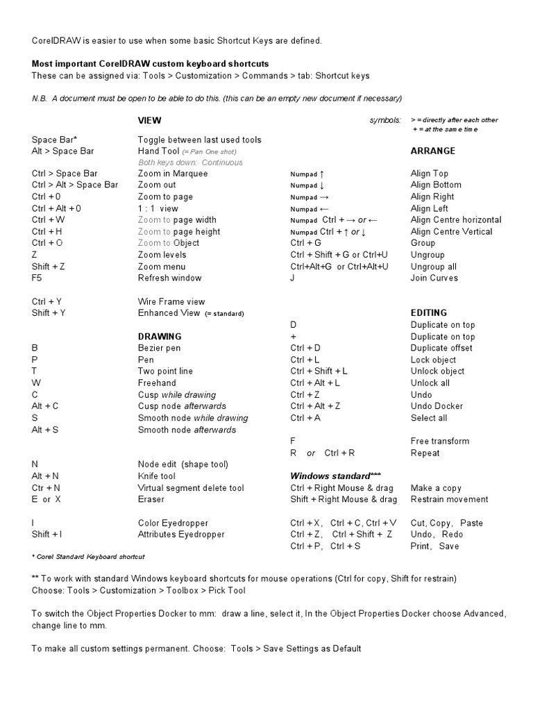 Coreldraw X5 Custom Keyboard Shortcuts Control Key Keyboard Shortcut