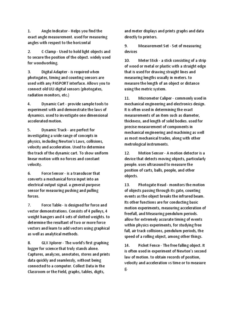 Physics Equipments With Uses Force Motion Physics Free 30 Day Trial Scribd